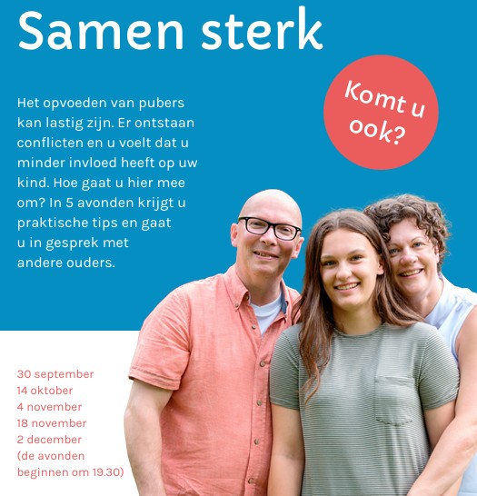 Informatieavonden Samen Sterk! Belangrijk nieuws! Eind september hopen we in Neder-Betuwe te starten met vijf avonden voor ouders over het…