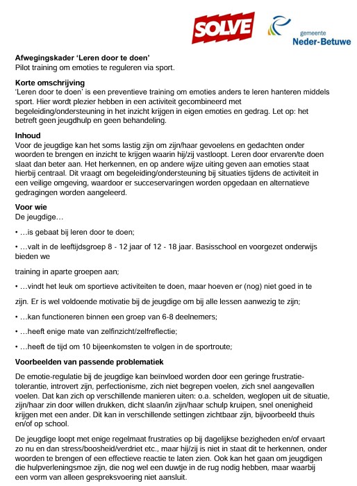 NEDER-BETUWE: In 2026 mogen wij vanuit Solve24, namens de gemeente Neder-Betuwe twee trajecten aanbieden van de training ‘Leren door te doen’.